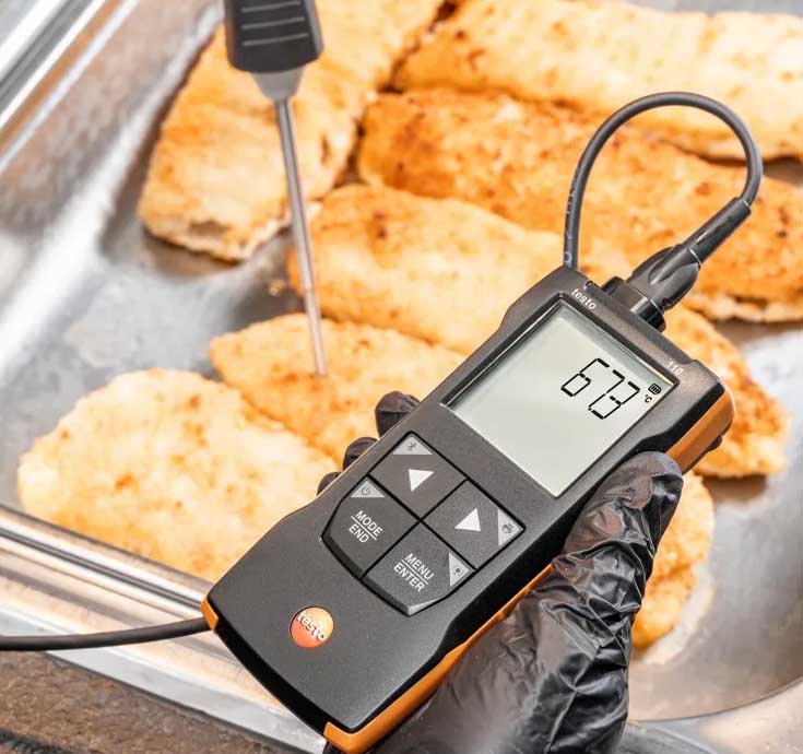 紧凑型测温仪testo 110尤其适用于需进行极低温度测量或对温度精度要求极高的应用场景。 testo 110符合HACCP标准,且兼容NTC或PT100(多种探头可选),是温度测量的理想选择,尤其是在食品领域或实验室中。