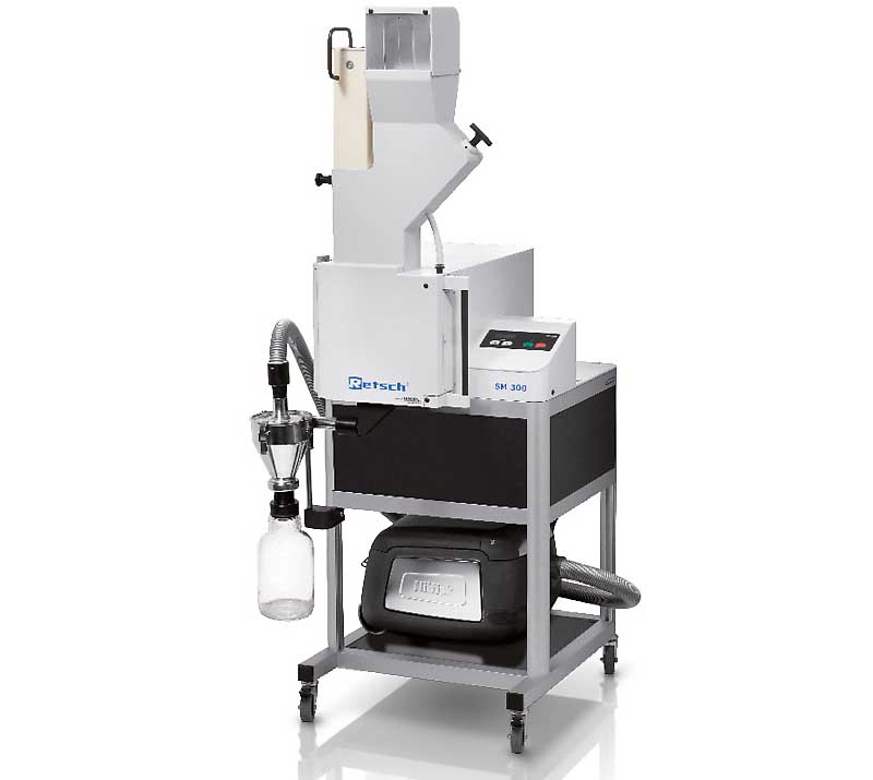 对于食品或化妆品的小规模生产等应用,SM 300可提供不锈钢316L食品级版本,符合食品和制药行业的规定。SM300可配备了长形进料漏斗,以便于像大麻这样的材料的进料。在该配置中,与样品有接触的所有配件均为316L不锈钢。转刀刀片和切割棱则可以选择由FDA认证的不锈钢,在恒定应力下比316L更不耐磨损。 该装置可选配一个旋风分离器和一个30升的收集容器(均为不锈钢316L材质),用于收集大容量样品。光滑的表面可几乎实现100%的样品回收,同时也易于清洁。