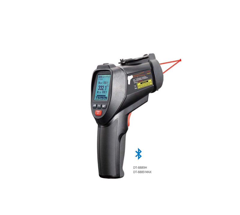DT-8889H是新设计、研发和推向市场的专业型手持式远距离工业型高温红外线测温仪,75:1的DS物距比测量精准安全,设计坚实,测温量程可达2200°C。它具有激光瞄准、带背光灯的LCD、最大值、最小值、差值、平均值、数据保持、高低温报警、发射率可调及自动关机等功能,广泛应用于钢铁、电力、冶炼等领域。