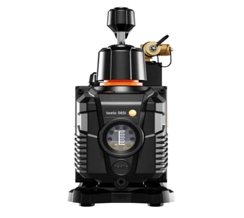 全新 testo 565i 用于自动抽真空过程并同时进行集成保压测试的智能真空泵。达到设定的真空目标值后,泵将自动停止抽真空,并同步启动真空保压测试。借此可安全去除外来气体和水分,并存储系统密封性相关数据。