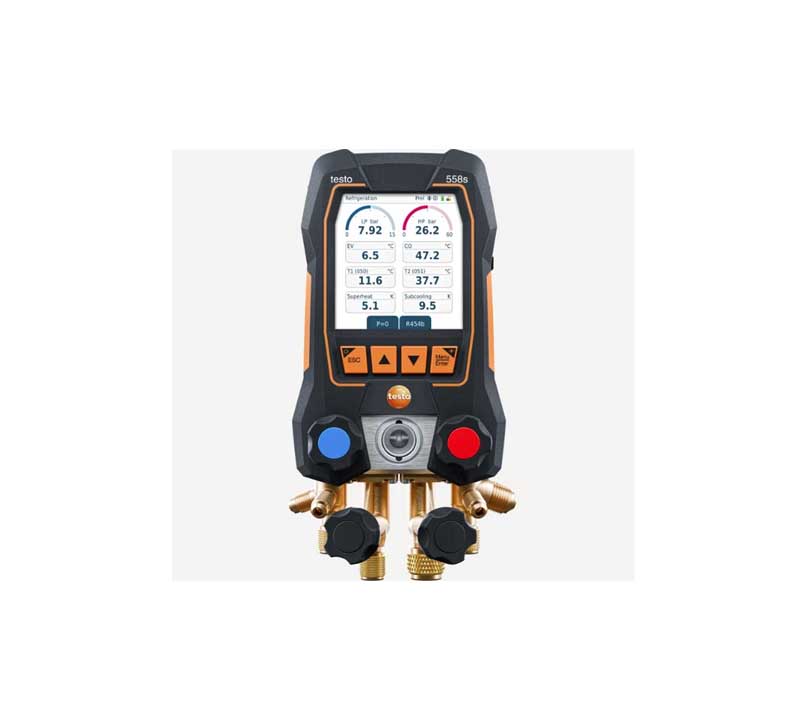 立即开始制冷系统、空调系统和热泵的无线测量体验。这套实用工具套装包含 testo 558s 电子冷媒表,与无线温度和真空探头蓝牙连接,为日常任务提供理想工具。testo 558s 操作简单,可通过触摸屏和按键进行操作,彩色大屏显示清晰的测量数据和图标。兼容 A3 和 A2L 制冷剂、IP54 防护的等级以及混合供电系统(包含可充电和非充电电池),该冷媒表非常适合各种工作环境。