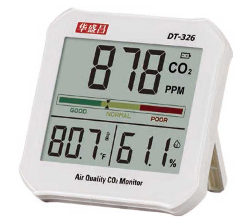 室内空气质量以 ppm 为单位显示,具有良好(0到 800ppm)正常(800到1500ppm)、差(>1500ppm)指示高清大屏,方便读数