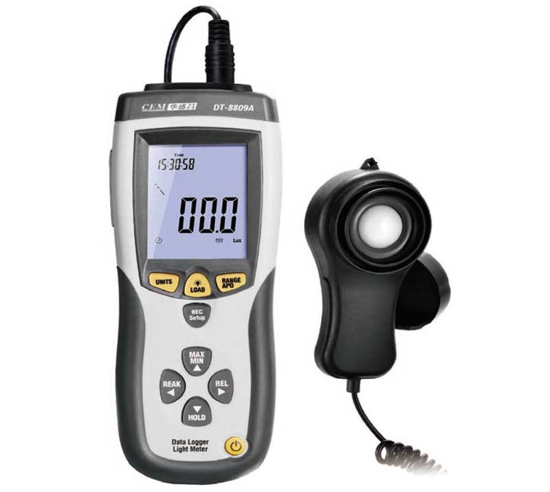 DT-8808/8809A专业照度计具有0到400,000Lux的量程范围,并有峰值/最大/最小值/数据保持等功能。内置的USB接口可将数据快速便捷地传送到电脑,8809A还可存储99组数据,超亮大屏LCD设计。应用于仓库、工厂、办公室、餐厅、学校、图书馆、医院、照相场所、录影场所、停车场、博物馆、美术馆、建筑物照明等场所的一般测试。