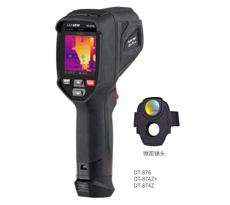DT-874Z+系列是自主新设计、研发和推向市场的一系列优选工具型红外热像仪,具有96*96、120*90、160*120、256x192红外分辨率,2.0和2.4英寸显示屏(可选),双注塑机壳可承受2米防摔、经久耐用,是工业成像测温应用领域普及型热像仪工具。