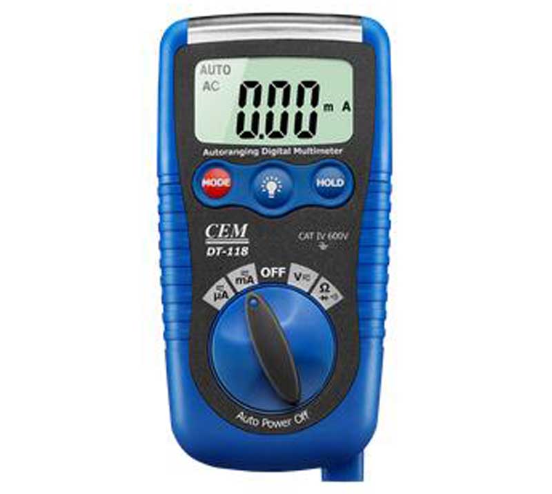 DT-118口袋式数字万用表,采用双模塑料外壳,拥有2000/4000计数高对比度液晶显示屏,符合CAT IV 600V安全规格,可进行非接触式电压检测,并配置手动筒,小巧、方便、快捷。