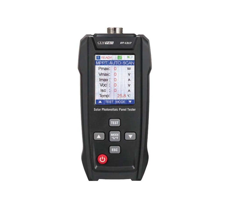 DT-1337主要用于测量光伏板的最大发电功率,在同样的太阳强度下,最大发电功率越高,说明光伏板的质量越好,彩色液晶显示屏在光照下能更清晰直观的读取数据,体现数据的曲线特征。