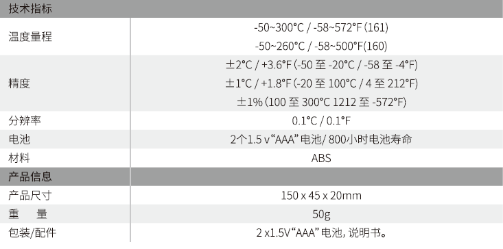 DT-160/161是一款IP67等级型防水食品温度计,探针可折叠,在进行测温时提供了方便、实用、坚固做支撑,适用于食品温度检测的各类应用场合。可用于水洗,并具有橡胶涂层的表面防滑处理。