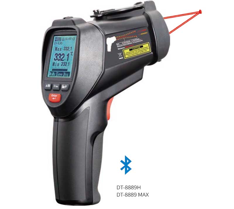 DT-8889H是新设计、研发和推向市场的专业型手持式远距离工业型高温红外线测温仪,75:1的DS物距比测量精准安全,设计坚实,测温量程可达2200°C。它具有激光瞄准、带背光灯的LCD、最大值、最小值、差值、平均值、数据保持、高低温报警、发射率可调及自动关机等功能,广泛应用于钢铁、电力、冶炼等领域。