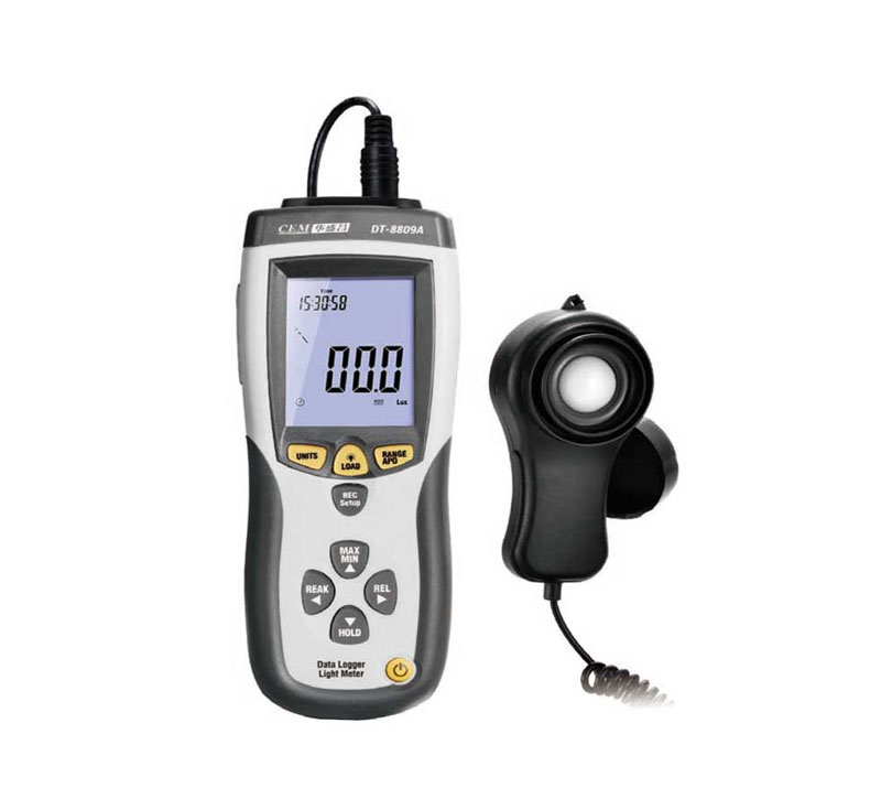 DT-8808/8809A专业照度计具有0到400,000Lux的量程范围,并有峰值/最大/最小值/数据保持等功能。内置的USB接口可将数据快速便捷地传送到电脑,8809A还可存储99组数据,超亮大屏LCD设计。应用于仓库、工厂、办公室、餐厅、学校、图书馆、医院、照相场所、录影场所、停车场、博物馆、美术馆、建筑物照明等场所的一般测试。